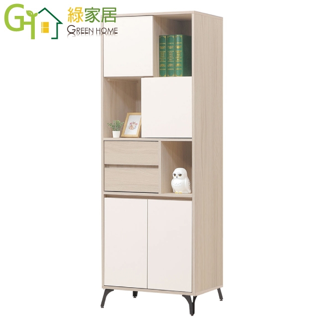 【綠家居】加菲利雙色2.2尺四門二抽展示櫃