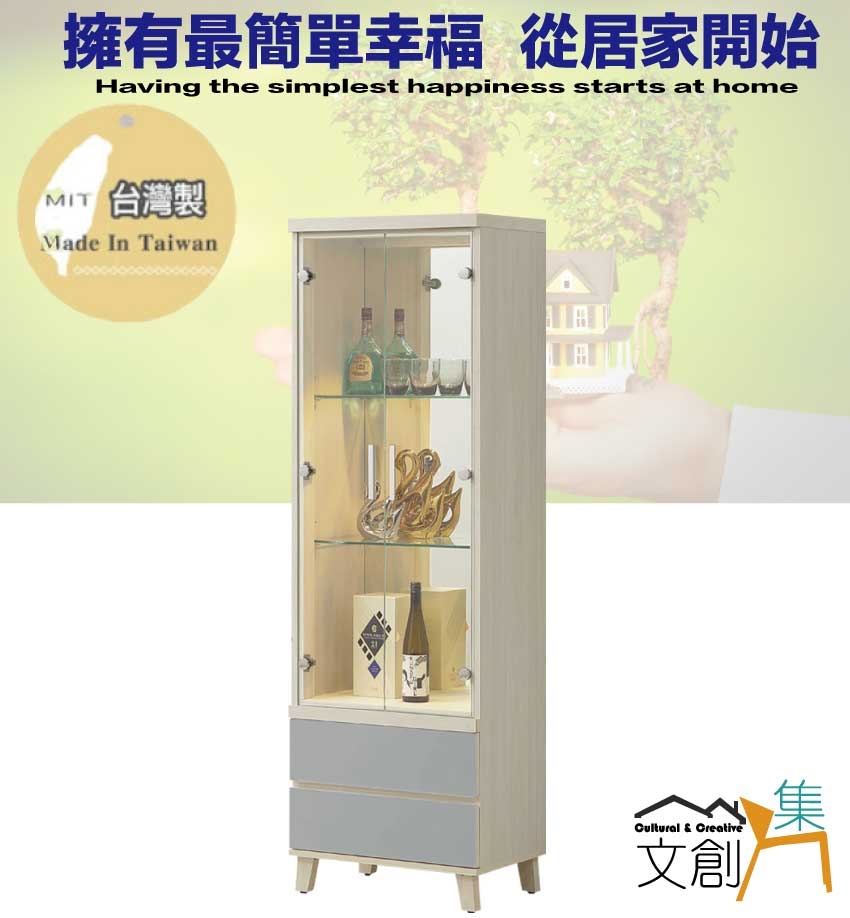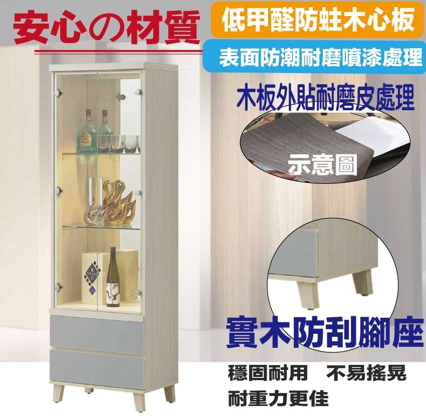 【綠家居】奇伊雙色2尺二門二抽展示櫃(內置LED氛圍燈)