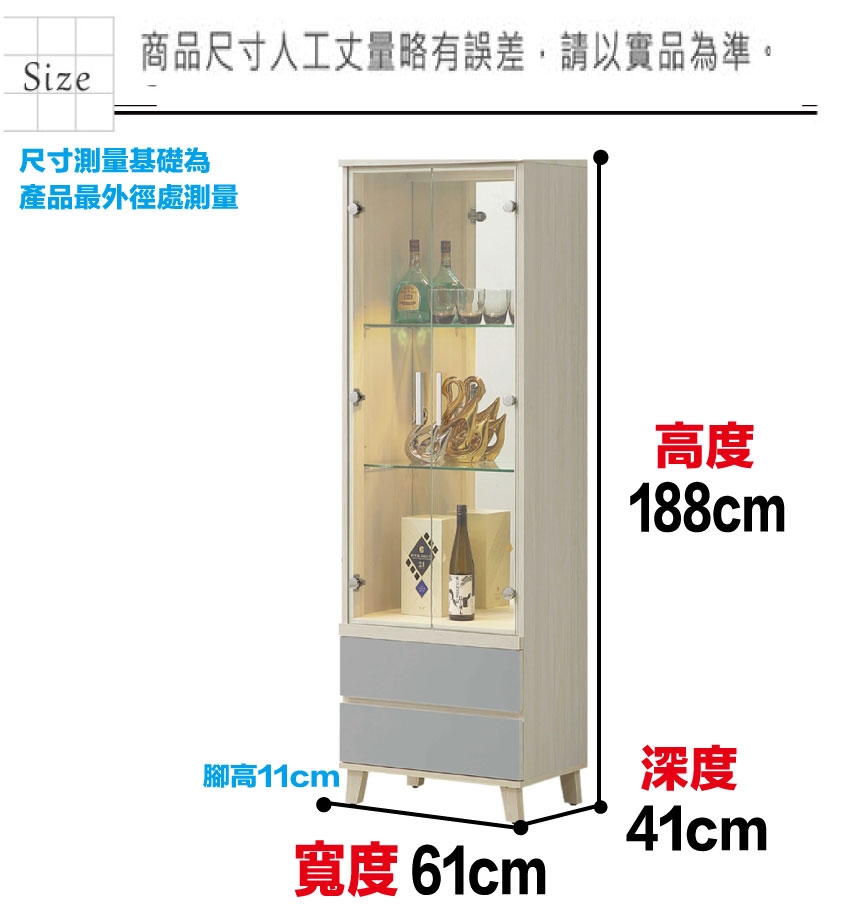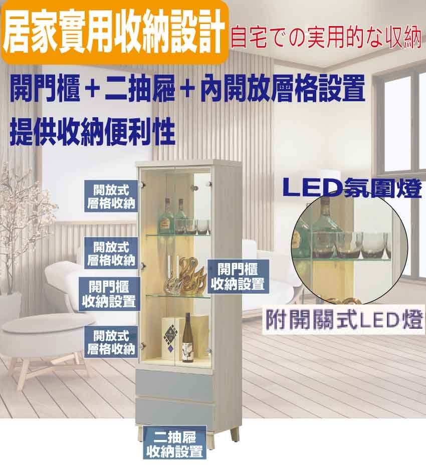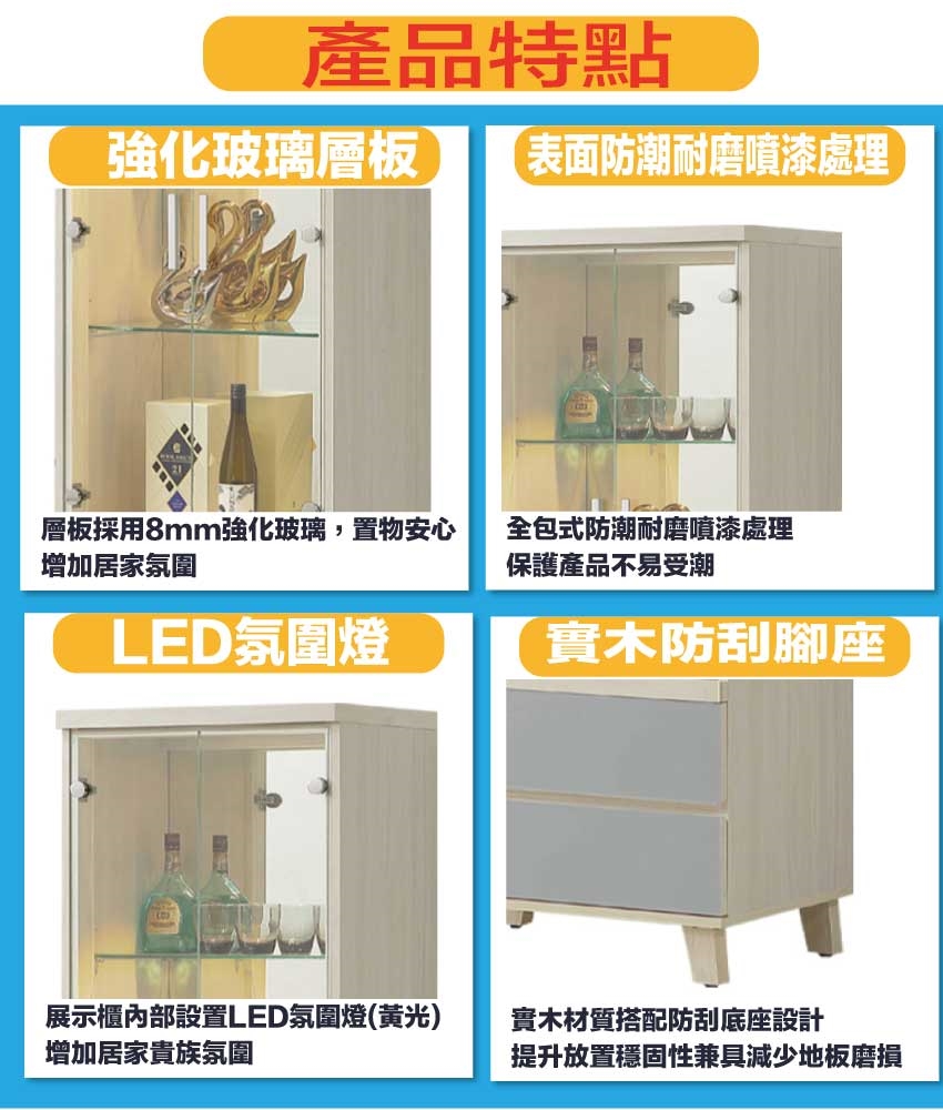 - ◆產品名稱:【綠家居】奇伊雙色2尺二門二抽展示櫃(內置LED氛圍燈)