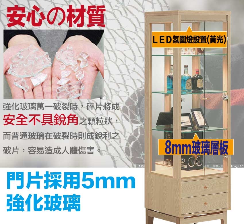 ★偏遠地區需額外加收運費,下標請先問與答詢問★ ★下訂前注意 由於商品流動較快,下訂前請先詢問是否有貨在下訂喔~★ 【綠家居】萬斯2.2尺二門二抽展示櫃 橡木紋色系+安心材質製造,使用放心+搭配居家更便利,採用防蛀木心板+防潮耐磨腳座+五金滑軌結構+強化玻璃門片等安心材質製造 ,外層採用防潮耐磨噴漆處理搭配採用開門櫃+二抽屜+內開放式層格+LED展示燈等收納空間設計,全由專人配送到家,專業安心服務,替你省下更多時間!