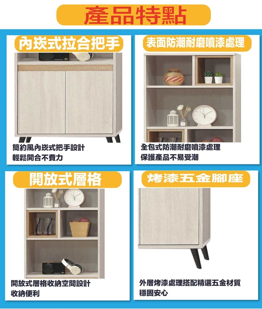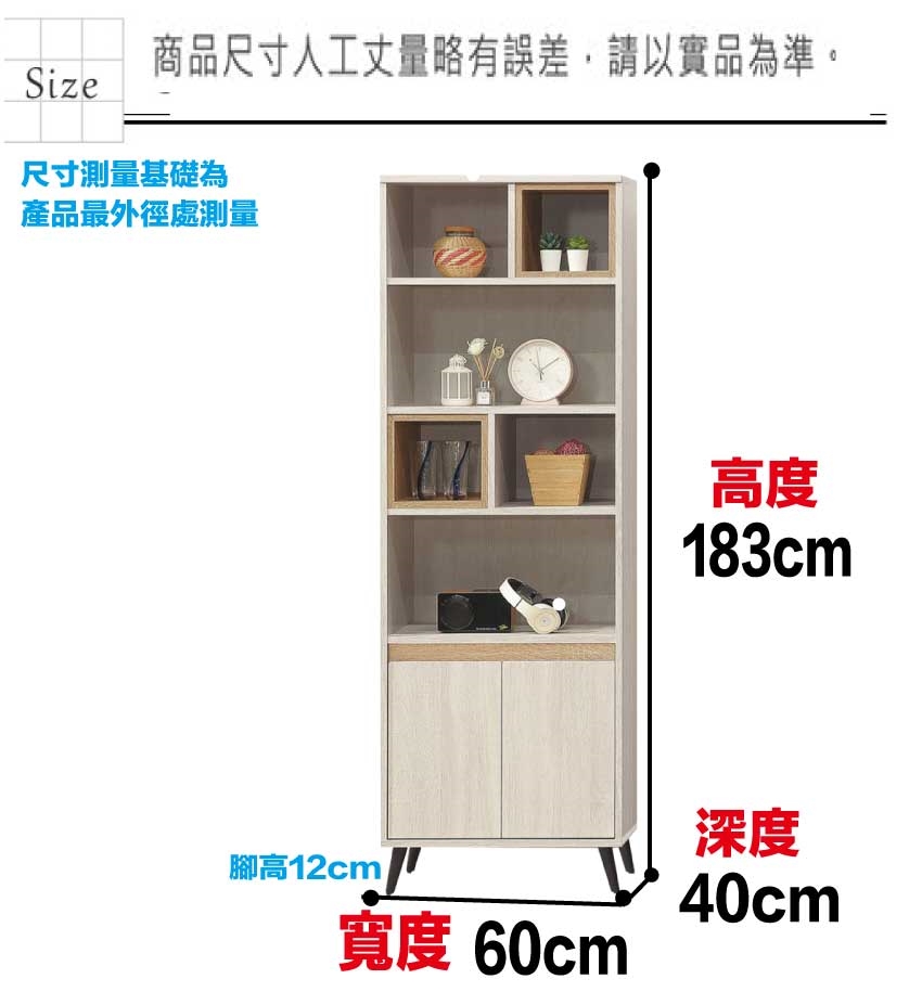 ★偏遠地區需額外加收運費,下標請先問與答詢問★ ★下訂前注意 由於商品流動較快,下訂前請先詢問是否有貨在下訂喔~★ 【綠家居】美斯2尺二門多格展示櫃 淺橡雙色系+安心材質製造,使用放心+搭配居家更便利,採用防蛀木心板+烤漆五金腳座+防夾手緩衝五金等安心材質製造 ,外層採用防潮耐磨噴漆處理搭配採用開門櫃+開放式層格等收納空間設計,全由專人配送到家,專業安心服務,替你省下更多時間!