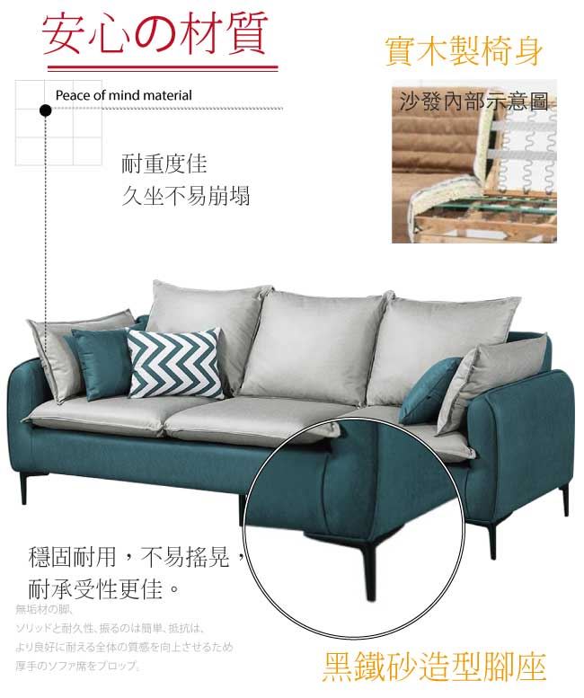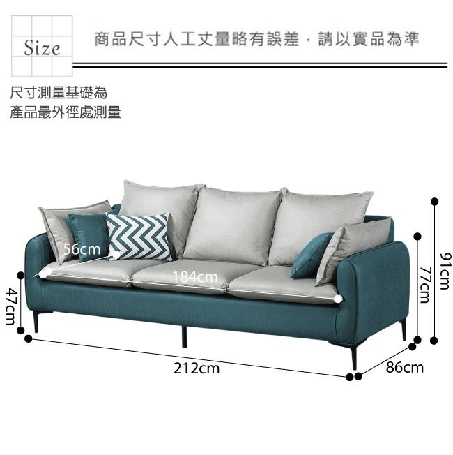 材質 | ◆產品名稱: 【綠家居】潔尼瓦 雙色柔韌科技布三人座沙發椅 產品尺寸: 尺寸:(寬)212x(深)86x(高)91/公分 材質:桐木實木骨架椅身+14cm防鏽烤漆黑色腳座 布料:柔韌仿皮革科技布料 坐墊:三層式高密度泡棉+絲棉
