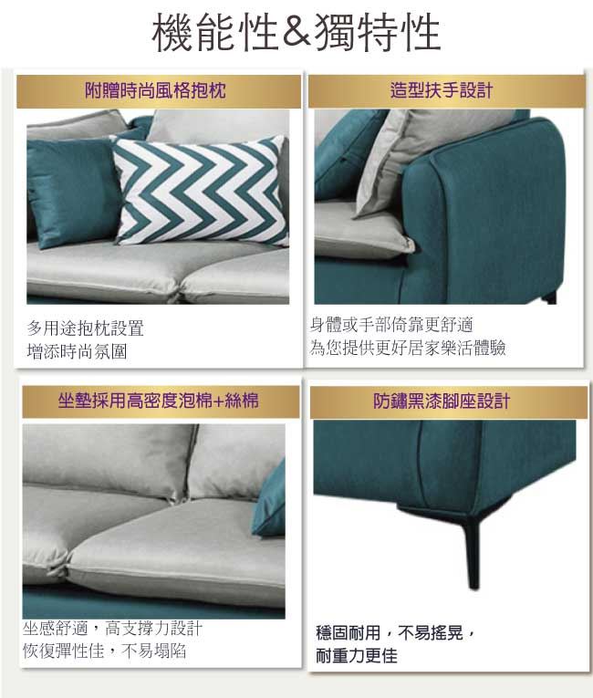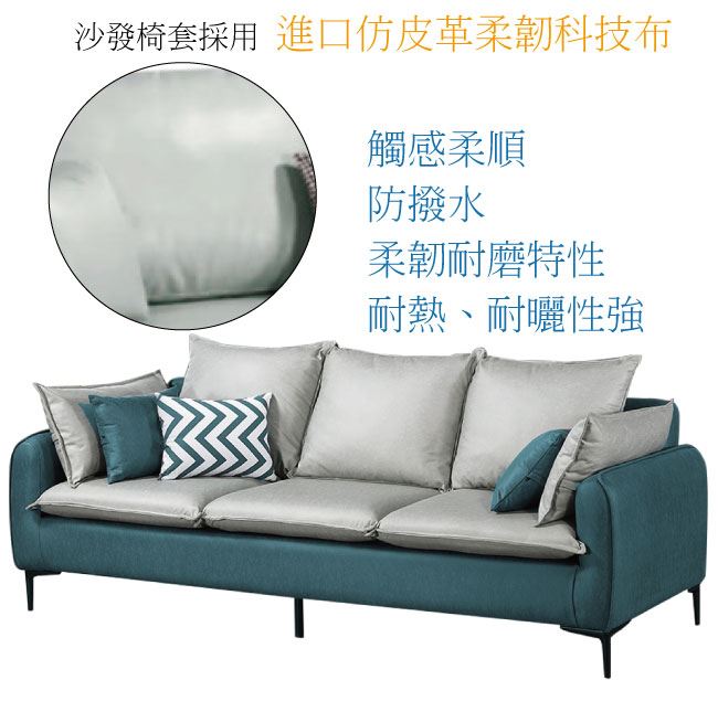 【綠家居】潔尼瓦 雙色柔韌科技布三人座沙發椅