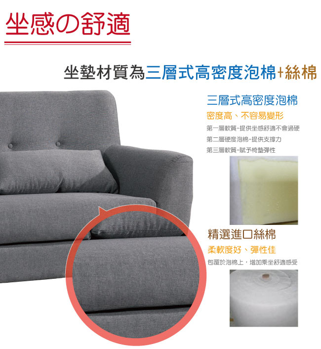 高密度泡棉+絲棉材質椅墊,提升坐感舒適度
