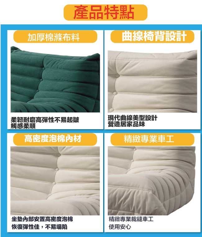 商品 介紹 | 【綠家居】克萊瓦高耐磨棉滌布懶人沙發椅(三色可選) 三色可選+現代簡約風格+安心材質製造,整體採用實木骨架椅身+加厚棉滌布料+高密度泡棉等安心材質製造,增加客廳擺設便利性,全由專人配送到家,專業安心服務,替你省下更多時間! 三色可選+現代簡約風格+安心材質製造,使用放心+搭配居家更便利 採用實木骨架椅身+加厚棉滌布料+高密度泡棉等安心材質製造 此商品不需要DIY組立,此商品為組立後之成品 品質保證、專業設計、貼心服務 全由專人配送到家,專業安心服務,替您省下更多時間 |
