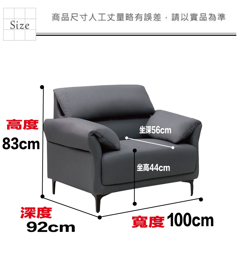 沙發椅尺寸:(寬)100x(深)92x(高)83/公分