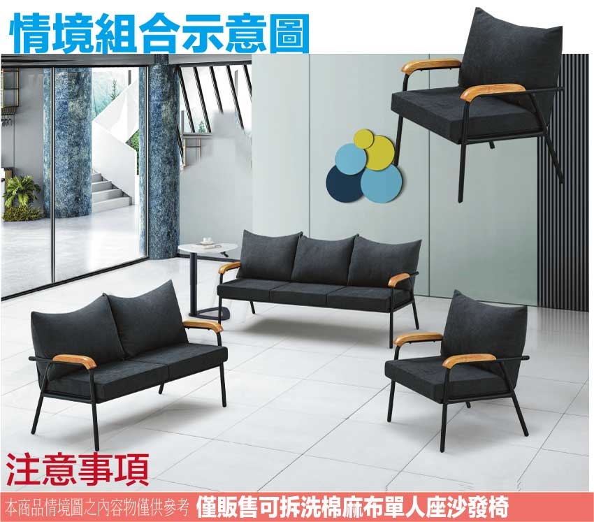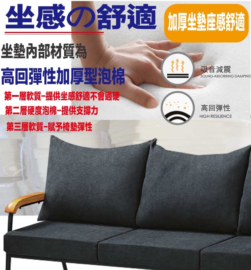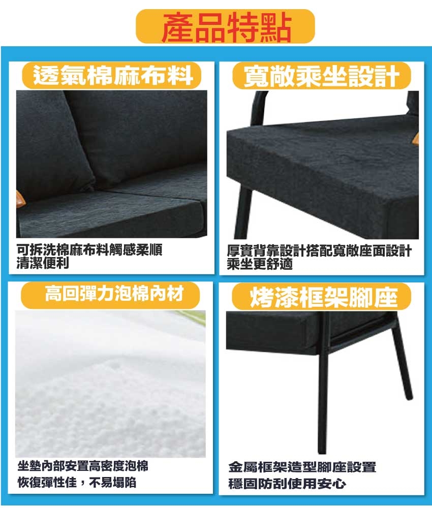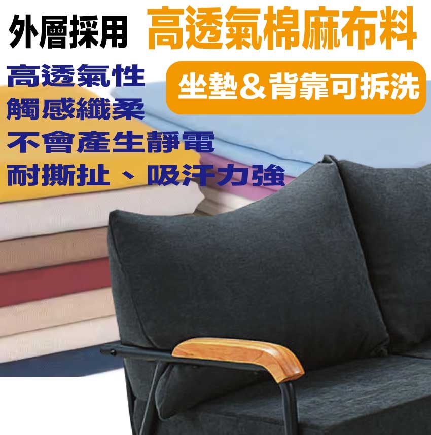烤漆金屬椅架&腳座+透氣棉麻布+高回彈力泡棉等安心材質製造
