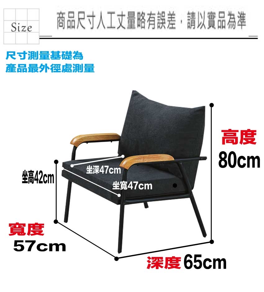 1人座尺寸:(寬)57x(深)65x(高)80/ 公分