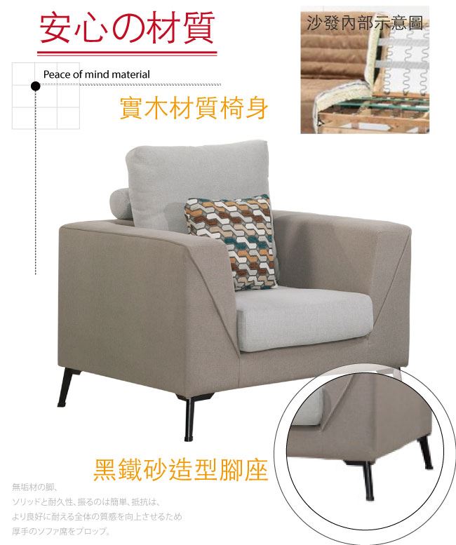 商品介紹 | 【綠家居】阿爾澤 時尚雙色可拆洗棉麻布獨立筒單人座沙發椅 時尚雙色系+現代美型外觀+安心材質設計,就是這種頂級質感的設計,能輕鬆地融入各種空間風格,採用松木實木骨架&椅身+可拆洗棉麻布+黑鐵砂腳座+高密度三層式泡棉+獨立筒彈簧座包等安心材質,品質安心有保障,現在購買專人送到府服務,免組裝+免運費,讓你省時省力省運費! 【商品特色】 時尚雙色系+現代美型外觀+安心材質設計 松木實木骨架&椅身+可拆洗棉麻布+黑鐵砂腳座+高密度三層式泡棉+獨立筒彈簧座包等安心材質 專人送貨到府免組裝免運費服務,讓您省時又便利 |
