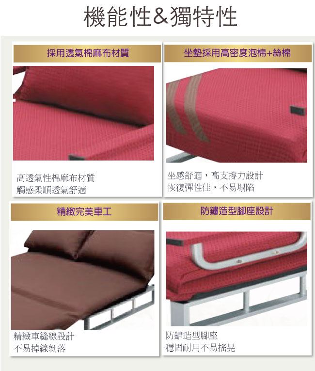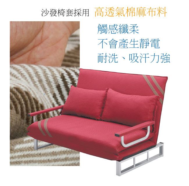 商品 介紹 | 【綠家居】伊邦德 簡約風透氣棉麻布雙人展開式沙發椅/沙發床(二色可選) 二色可選+現代美型外觀+安心材質設計,就是這種頂級質感的設計,能輕鬆地融入各種空間風格,採用防銹鋼管骨架+防鏽五金結構+透氣棉麻布料+防鏽電鍍扶手框架+高密度三層式泡棉等安心材質,品質安心有保障,現在購買專人送到府服務,免組裝+免運費,讓你省時省力省運費! 【商品特色】 二色可選+現代美型外觀+安心材質設計 椅背展開式變化設計,輕鬆使用即可將沙發椅變化成沙發床,增加居家便利性 防銹鋼管骨架+防鏽五金結構+防鏽電鍍扶手框架+透氣棉麻布料+高密度三層式泡棉等安心材質 專人送貨到府免組裝免運費服務,讓您省時又便利 |
