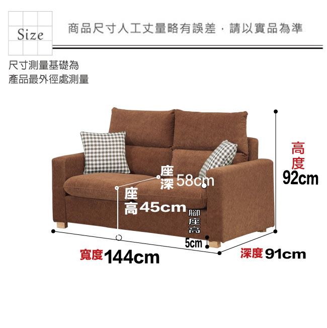 材質 | 產品名稱:【綠家居】拜亞迪耐磨貓抓布二人座沙發椅 產品尺寸: 二人座尺寸:(寬)144x(深)91x(高)92/公分 材質:實木骨架椅身+防潮曲線造型腳座 布料:新科技耐磨貓抓布 坐墊內部材質:高回彈性加厚泡棉