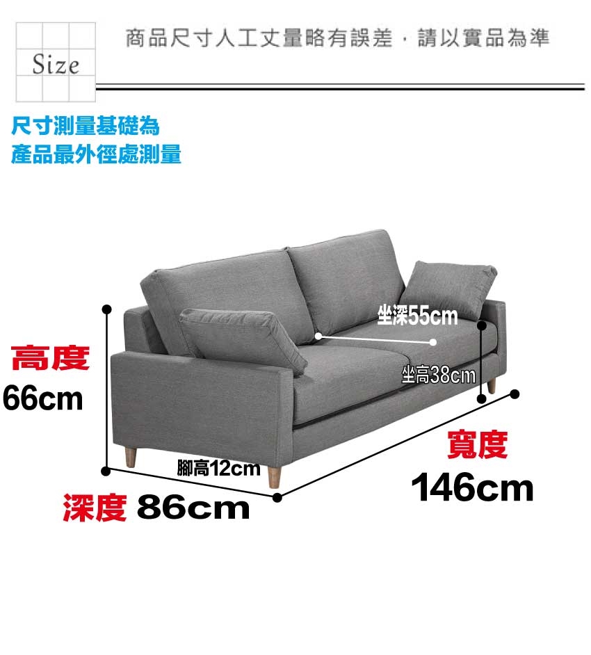 2人沙發椅尺寸:(寬)146x(深)86x(高)68/公分