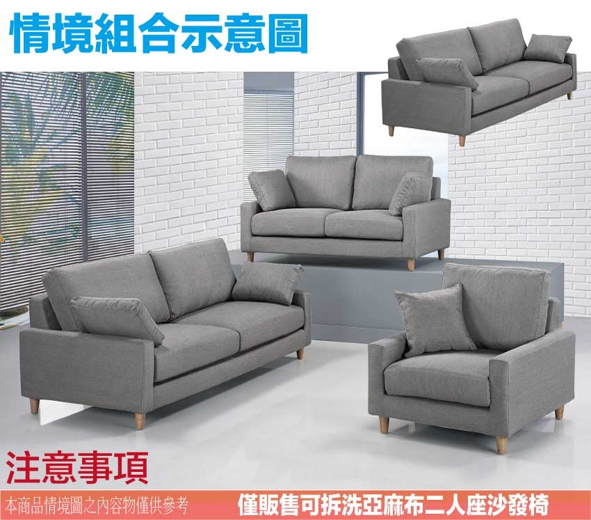 - ◆產品名稱:【綠家居】薔蘿灰透氣亞麻布二人座沙發椅