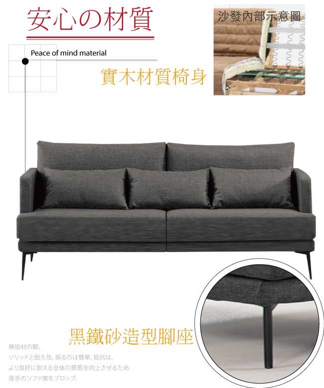 【綠家居】米卡瑪深灰透氣棉麻布三人座沙發椅