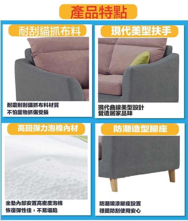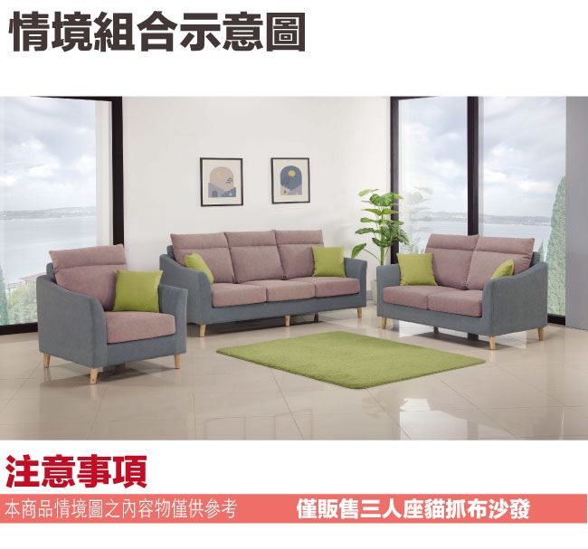 【綠家居】亞迪尼耐磨貓抓布三人座沙發椅