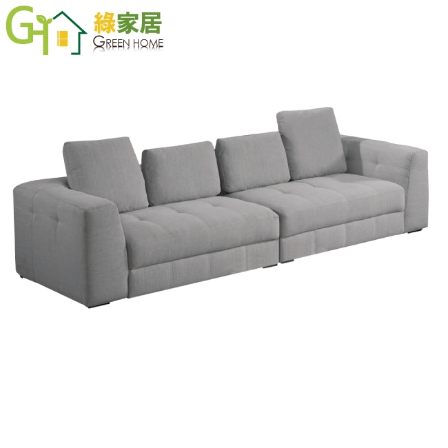 【綠家居】普曼灰色透氣棉麻布四人座沙發椅
