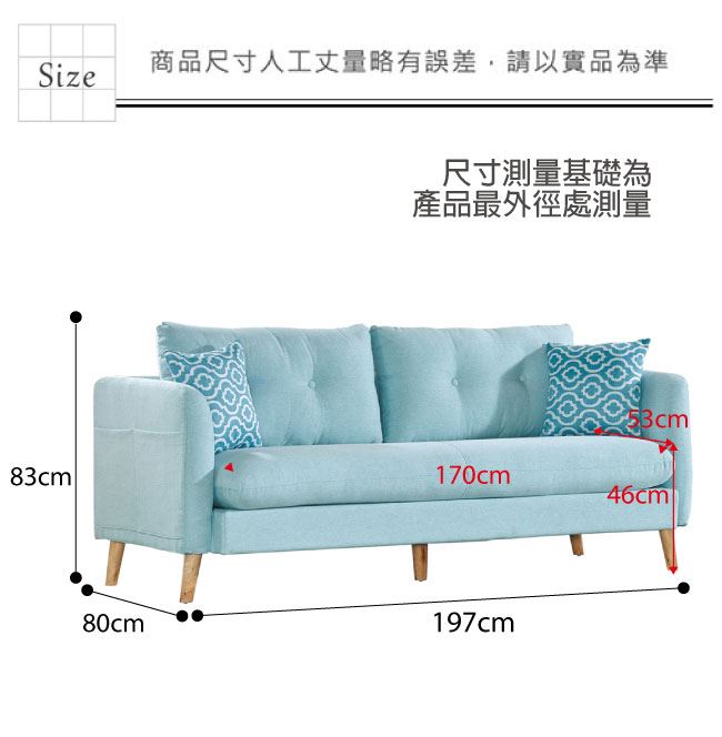 材質 | ◆產品名稱:【綠家居】 敦斯登 簡約可拆洗棉麻布獨立筒三人沙發椅 產品尺寸: 3人座尺寸:(寬)197x(深)80x(高)83/公分 材質:桐木實木骨架椅身+防潮實木腳座 材質:可拆洗棉麻布+獨立筒彈簧座包 坐墊:三層式高密度泡棉+絲棉 |
