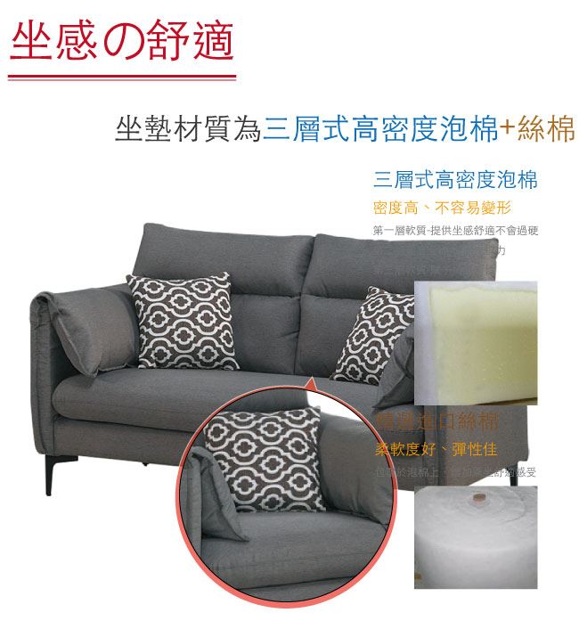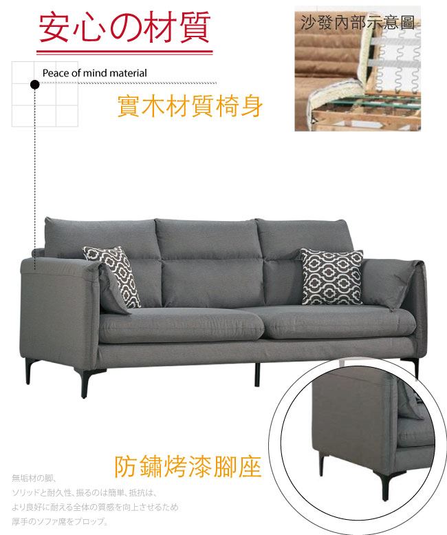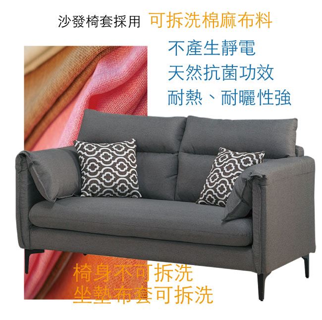 【綠家居】利馬 時尚灰可拆洗亞麻布獨立筒三人座沙發椅