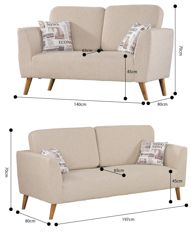 三人座:(寬)197x (深)80x(高)70/ 公分