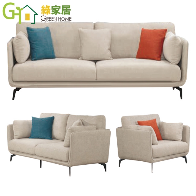 【綠家居】林德亞麻色透氣棉麻布沙發椅組合(1+2+3人座組合)
