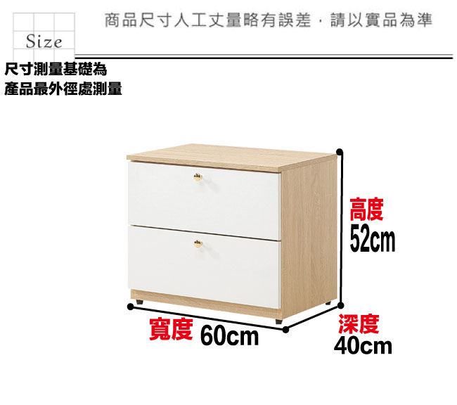 材質 | ◆產品名稱:【綠家居】杜賓利2尺二抽電視櫃 尺寸:(寬)60x(深)40(高)52/公分 ◆材質: 材質:防蛀木心板+正面白色面板部份採用採用皮革紋路處理採用皮革紋路處理防水耐磨+五金滑軌結構+防潮耐磨腳座 噴漆:防潮耐磨噴漆處理 |