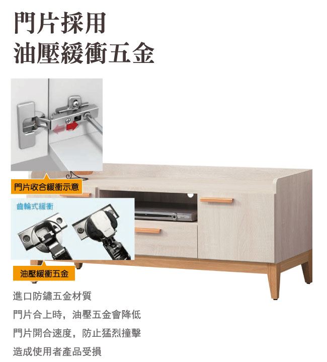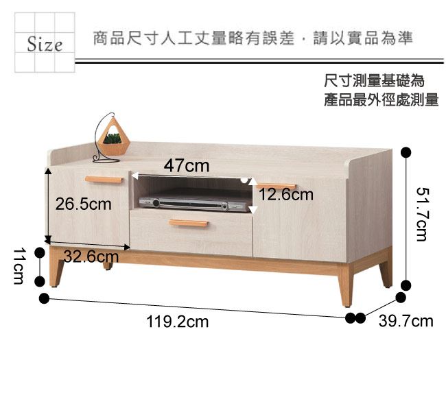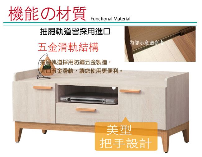 材質 | ◆產品名稱:【綠家居】 伊森瑪 雙色4尺二門單抽電視櫃/視聽櫃 尺寸:(寬)119.2x(深)39.7x(高)51.7/公分 ◆材質: 材質:防蛀木心板+五金滑軌結構+防潮實木腳座+防夾手緩衝門片五金 |