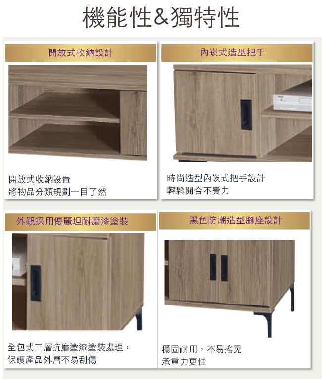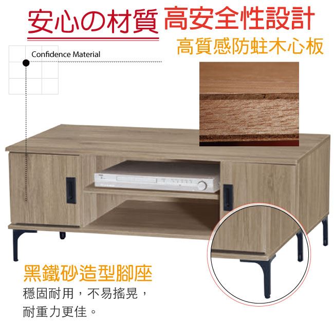 材質 | ◆產品名稱:【綠家居】提比里斯 現代4尺二門電視櫃/視聽櫃 電視櫃尺寸:(寬)120x(深)40x(高)46/公分 ◆材質: 材質:黑鐵砂腳座+防蛀木心板+防夾手緩衝門片五金 塗漆:優利坦三層全包式耐磨塗漆塗裝處理 |