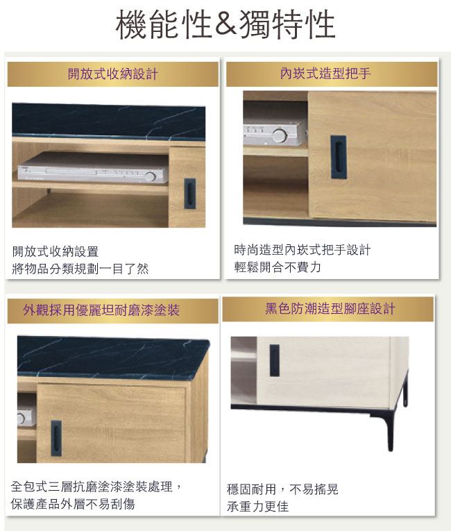 商品介紹 | 【綠家居】亞塞 現代4尺雲紋石面電視櫃/視聽櫃(三色可選) 三色可選+現代簡約風格+安心材質製造,整體採用防夾手緩衝門片五金+黑鐵砂腳座+防蛀木心板+2cm雲紋石面等安心材質製造,外層採用優利坦三層全包式耐磨塗漆塗裝處理搭開門櫃+開放式層格等收納設計,全由專人配送到家,專業安心服務,替你省下更多時間! 【商品特色】 三色可選+現代簡約風格+安心材質製造,使用放心+搭配居家更便利 採用防夾手緩衝門片五金+黑鐵砂腳座+2cm雲紋石面+防蛀木心板等安心材質製造 採用開門櫃+開放式層格等收納設計 此商品不需要DIY組立,此商品為組立後之成品 品質保證、專業設計、貼心服務 全由專人配送到家,專業安心服務,替您省下更多時間 |