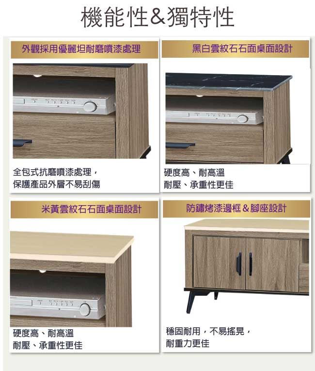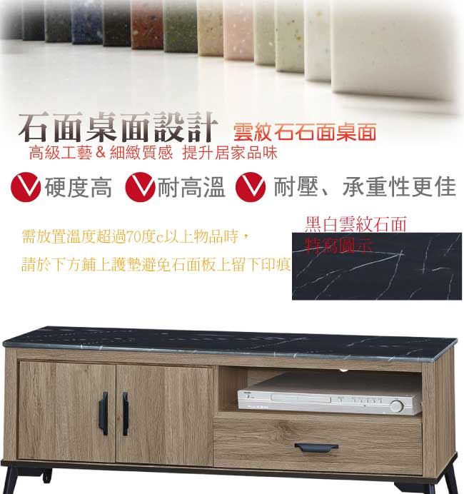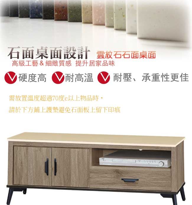 【綠家居】凱梅 二門4尺石面&岩板單抽電視櫃(三色石面可選)