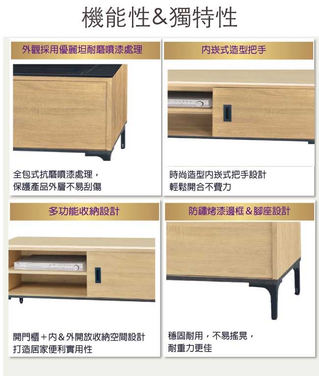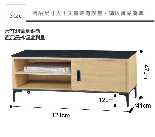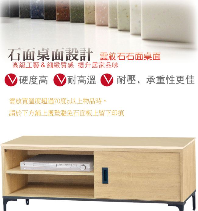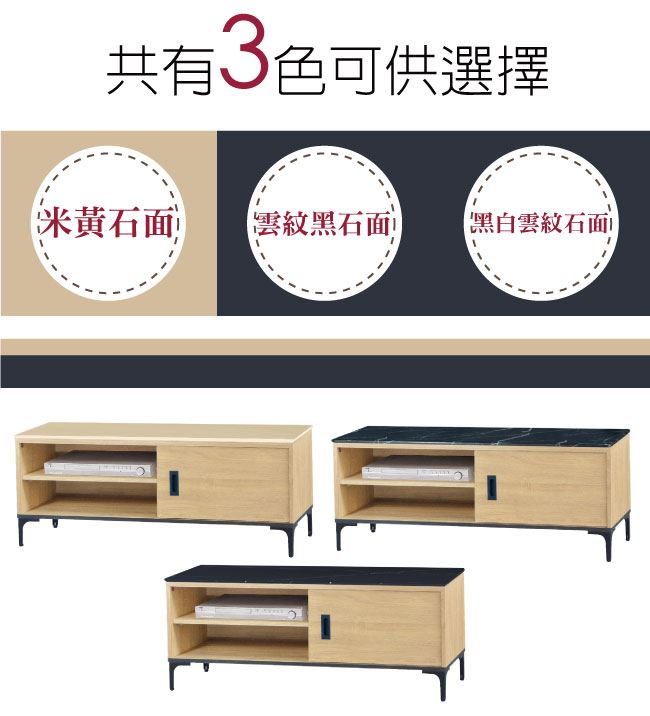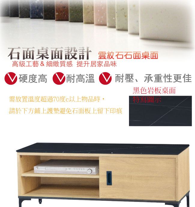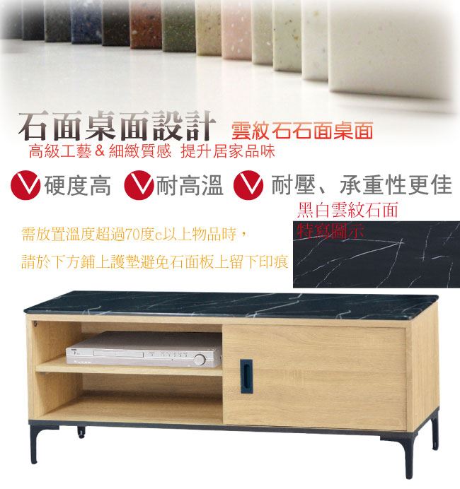 材質 | ◆產品名稱: 【綠家居】巴洛納 單門4尺石面電視櫃(三色石面可選) 尺寸:(寬)121x(深)41x(高)47/公分 ◆材質: 材質:防蛀木心板+黑鐵砂框架&腳座+五金滑軌結構+12mm雲紋石&岩板面板 噴漆:防潮耐磨噴漆處理