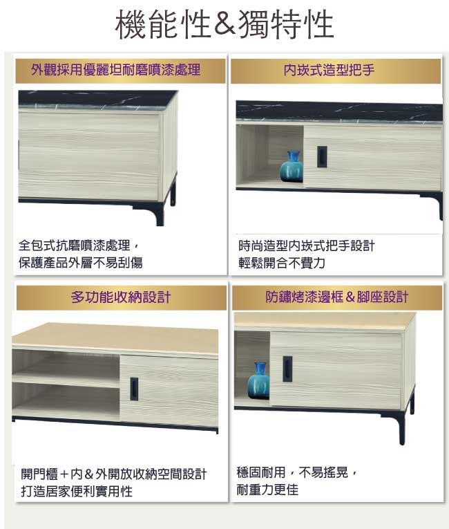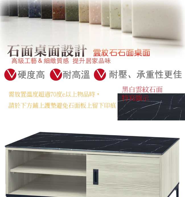 材質 | ◆產品名稱: 【綠家居】多巴納 單門4尺石面電視櫃(三色石面可選) 尺寸:(寬)121x(深)41x(高)47/公分 ◆材質: 材質:防蛀木心板+黑鐵砂框架&腳座+五金滑軌結構+12mm雲紋石&岩板面板 噴漆:防潮耐磨噴漆處理