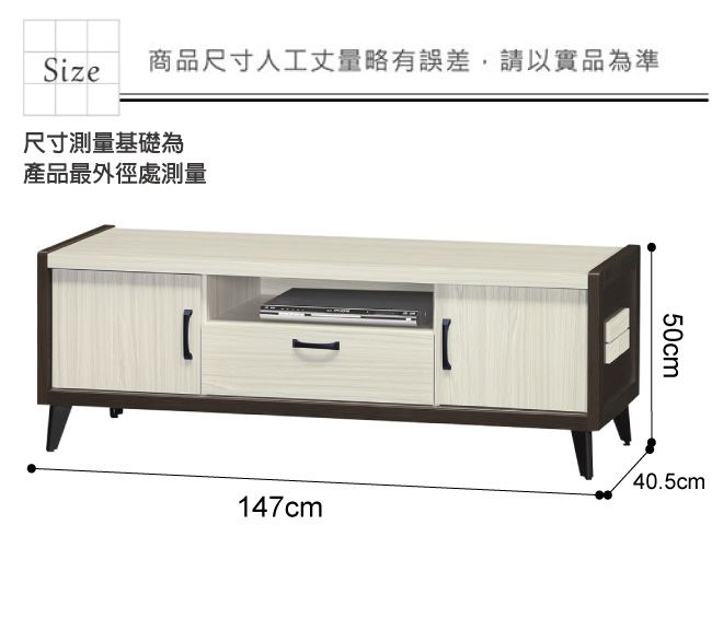 材質 | ◆產品名稱: 【綠家居】塞加 雙色4.9尺二門單抽電視櫃 尺寸:(寬)147x(深)40.5x(高)50/公分 ◆材質: 材質:防蛀木心板+防潮黑漆腳座+五金滑軌結構+防夾手緩衝門片五金 噴漆:防潮耐磨噴漆處理