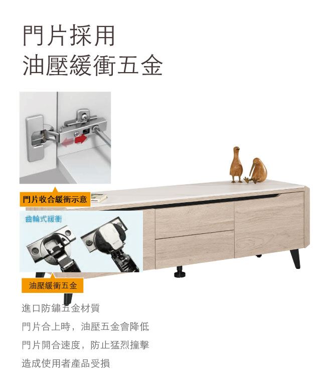 - 防夾手緩衝五金+岩板桌面板