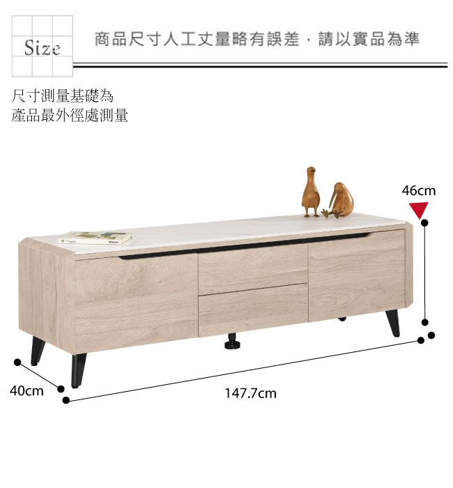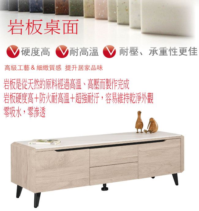 材質 | ◆產品名稱: 【綠家居】卡蘭 岩板4.9尺二門二抽電視櫃/視聽櫃 產品尺寸: 尺寸:(寬)147.7x(深)40x(高)46公分 ◆材質: 材質:防蛀木心板+黑鐵砂腳座+12mm岩板桌面板 材質:五金滑軌結構+防夾手緩衝門片五金 塗漆:優利坦全包式耐磨噴漆處理