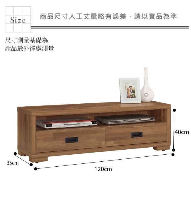 材質 | ◆產品名稱: 【綠家居】山普森 時尚4尺二抽電視櫃/視聽櫃(二色可選) 產品尺寸: 尺寸:(寬)120x(深)35x(高)40公分 ◆材質: 材質:防蛀木心板+防潮耐磨腳座 材質:五金滑軌結構 塗漆:優利坦全包式耐磨噴漆處理