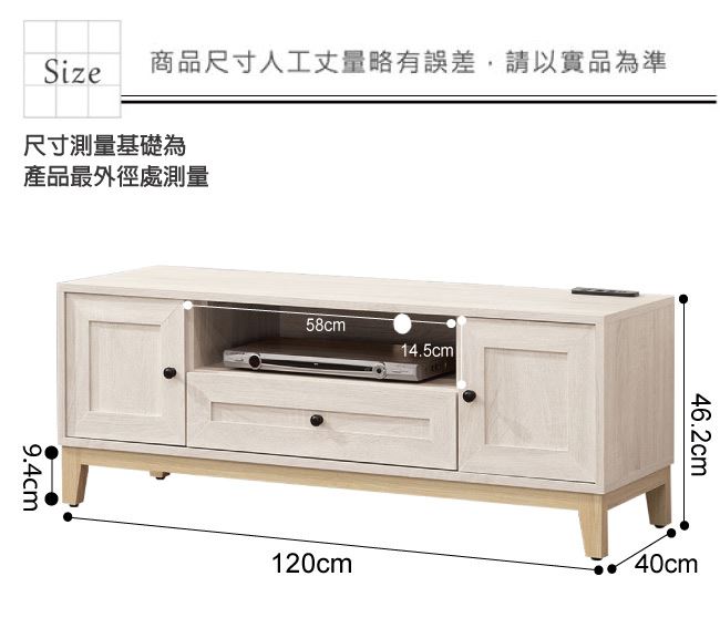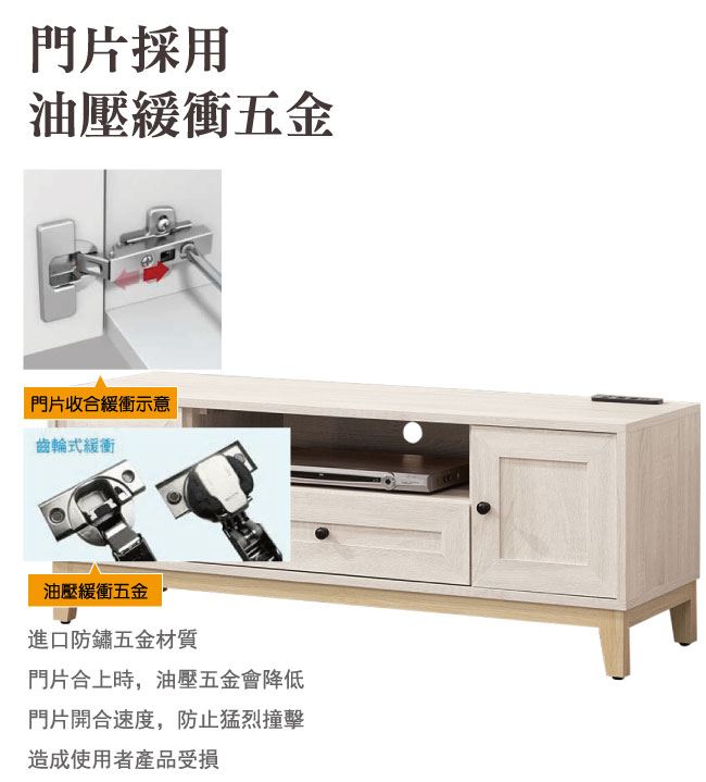 材質 | ◆產品名稱: 【綠家居】范辛頓 時尚4尺二門單抽電視櫃/收納櫃 尺寸:(寬)120x(深)40x(高)46.2/公分 ◆材質: 材質:防蛀木心板+防潮耐磨腳座+防夾手緩衝門片五金+五金滑軌結構 噴漆:防潮耐磨噴漆處理