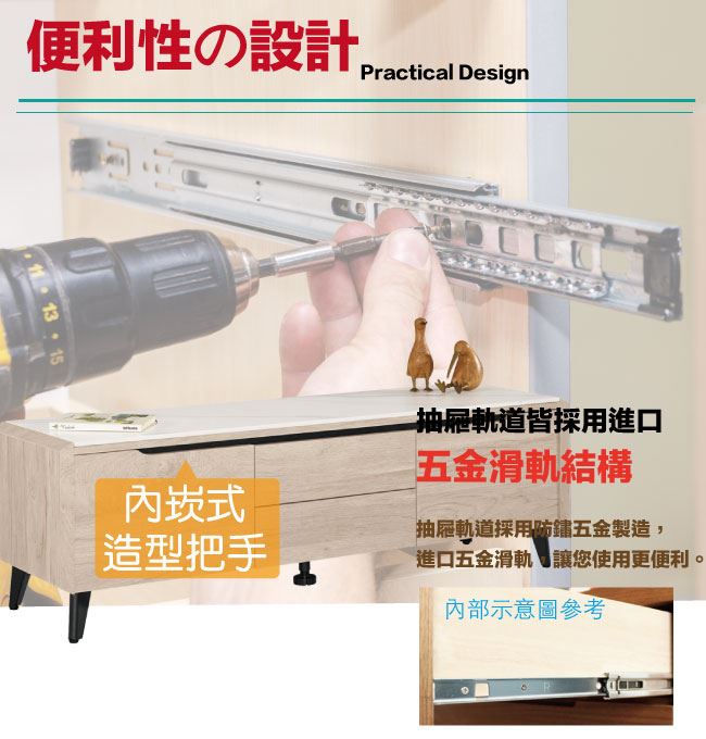 - 防蛀木心板+防鏽黑漆五金腳座