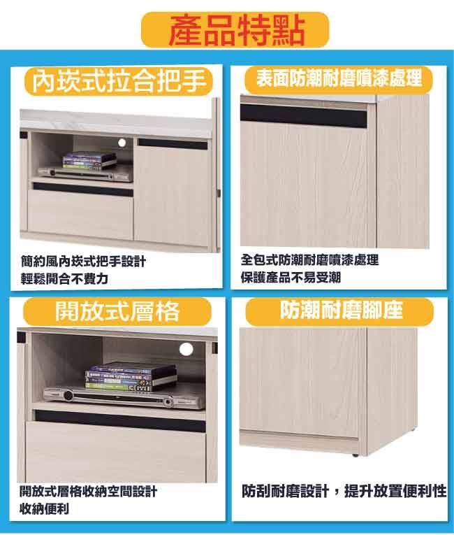 商 品 介 紹 | 【綠家居】麥森4尺二門單抽電視櫃 淺橡木紋色系+現代簡約風格+安心材質製造,使用放心+搭配居家更便利,整體採用防蛀木心板+防潮耐磨腳座+五金滑軌結構+防夾手緩衝門片五金+仿雲紋石紋路木質桌面板等材質製造搭配外層採用優莉坦耐磨全包式噴漆處理 ,採用開門櫃+單抽屜+開放式層格等收納空間設計,全由專人配送到家,專業安心服務,替你省下更多時間! 【商品特色】 淺橡木紋色系+現代簡約風格+安心材質製造,使用放心+搭配居家更便利 防蛀木心板+防潮耐磨腳座+五金滑軌結構+防夾手緩衝門片五金+仿雲紋石紋路木質桌面板等材質製造 採用開門櫃+單抽屜+開放式層格等收納空間設計 此商品不需要DIY組立,此商品為組立後之成品 品質保證、專業設計、貼心服務 全由專人配送到家,專業安心服務,替您省下更多時間
