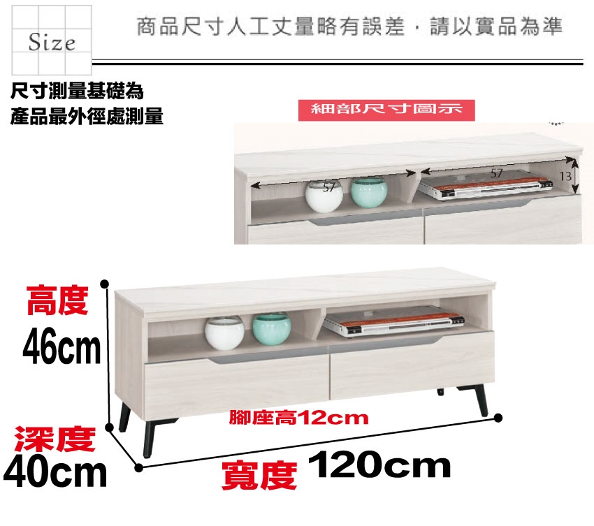 - ◆產品名稱:【綠家居】丹尼4尺岩板二抽電視櫃