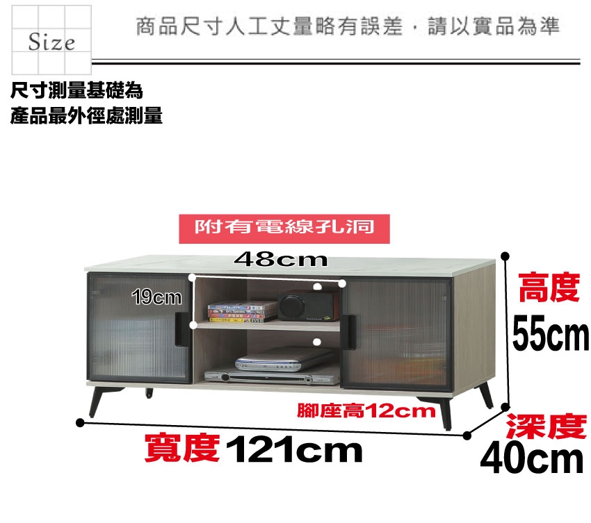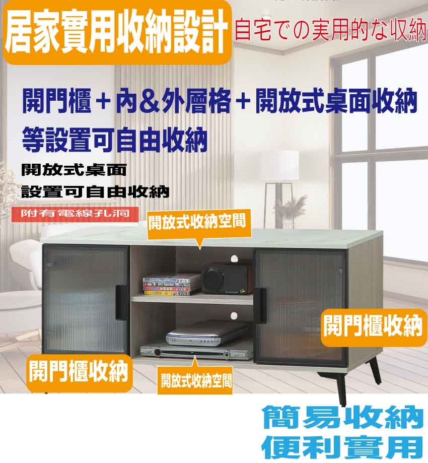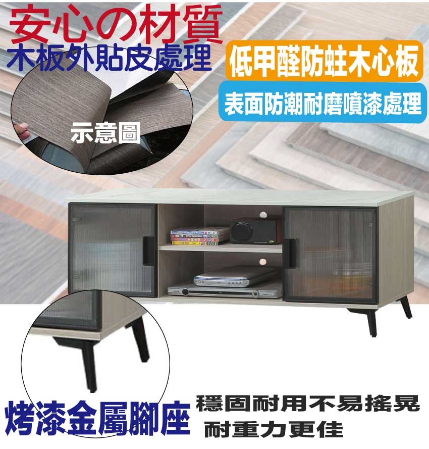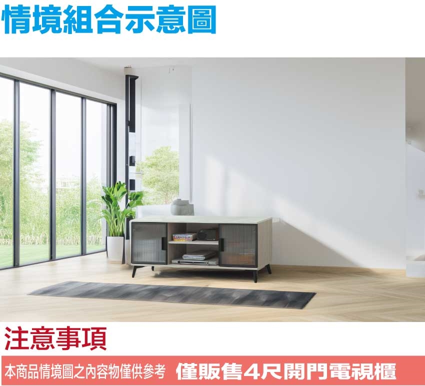 - ◆產品名稱:【綠家居】夏斯4尺仿石紋二門電視櫃