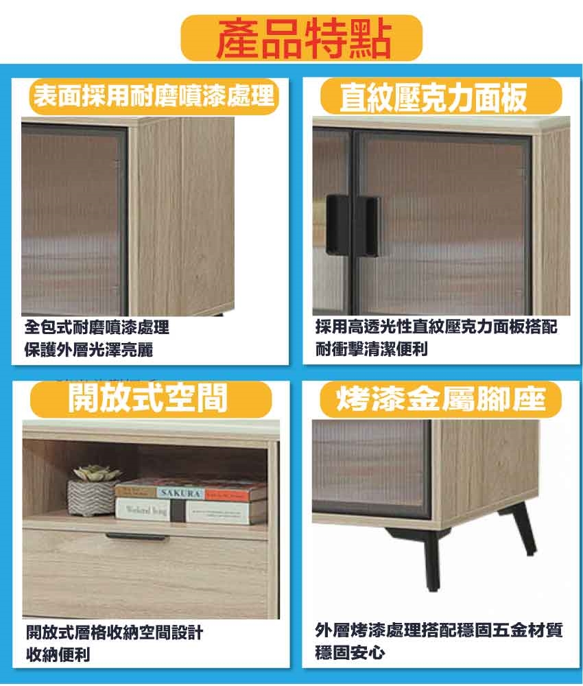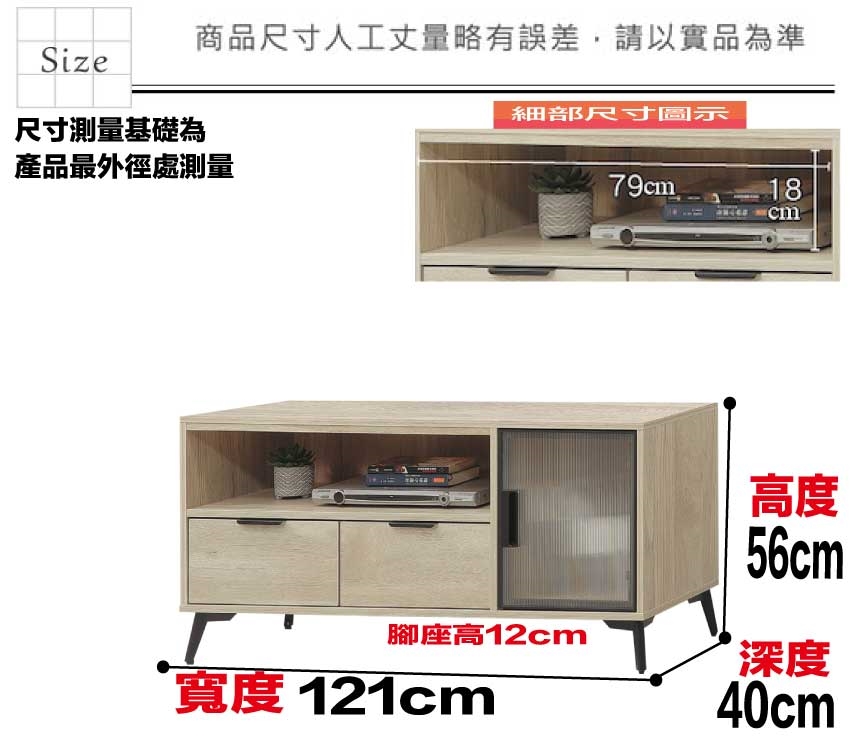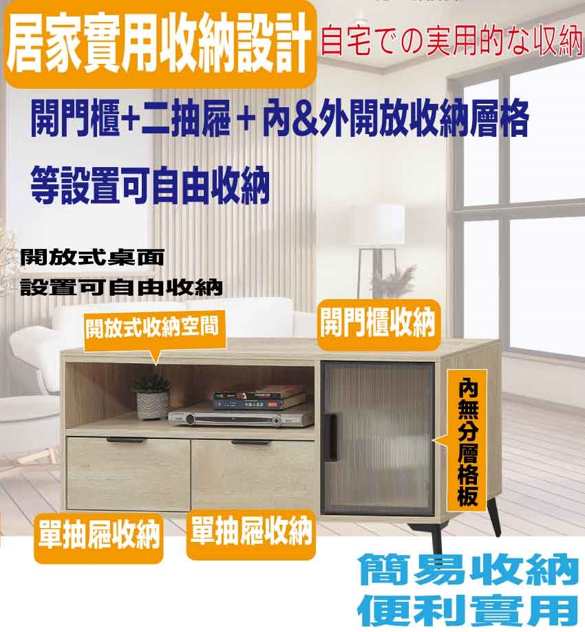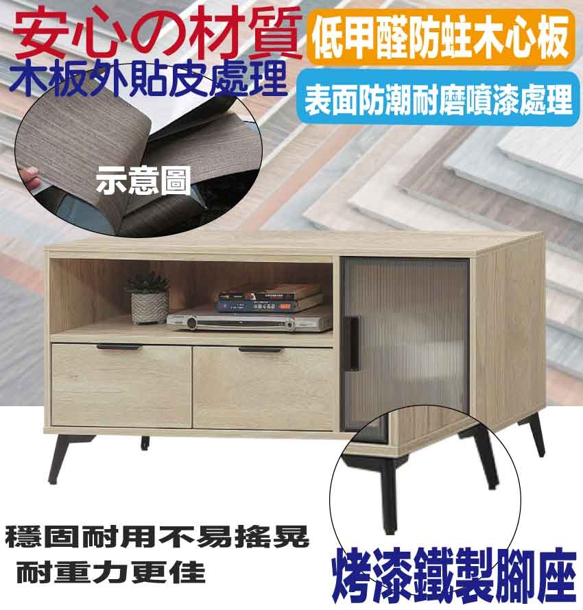 - ◆產品名稱:【綠家居】畢克爾4尺單門二抽鋁框電視櫃