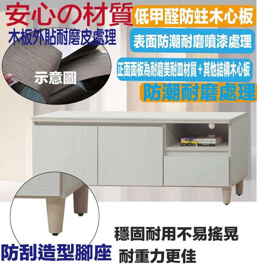 ★偏遠地區需額外加收運費,下標請先問與答詢問★ ★下訂前注意 由於商品流動較快,下訂前請先詢問是否有貨在下訂喔~★ 【綠家居】盧班岩板4尺單抽二門電視櫃 淺橡木紋色系+安心材質製造,使用放心+搭配居家更便利,採用防蛀木心板+防刮造型腳座+12mm高硬度岩板桌面板+防夾手緩衝五金等安心材質製造 ,外層採用防潮耐磨噴漆處理搭配採用開門櫃+單抽屜+開放式層格等收納空間設計,全由專人配送到家,專業安心服務,替你省下更多時間!