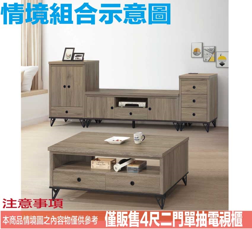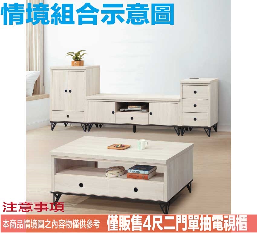 - ◆產品名稱:【綠家居】瑪法4尺二門單抽電視櫃(三色可選)