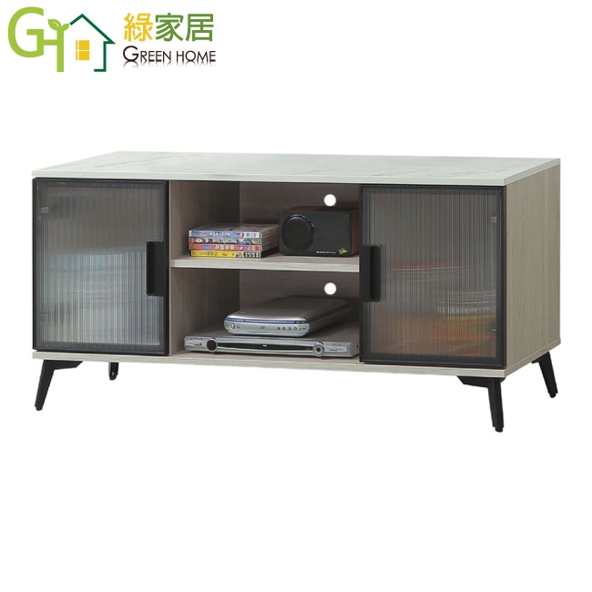 【綠家居】皮克4尺開門中空電視櫃(仿大理石紋路耐磨美耐皿面板)