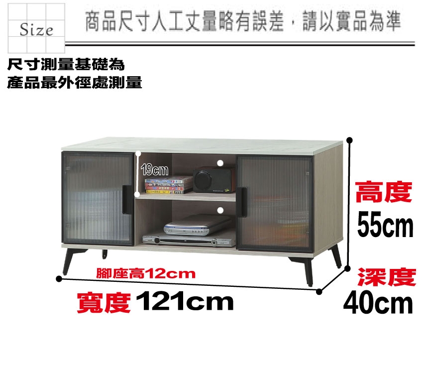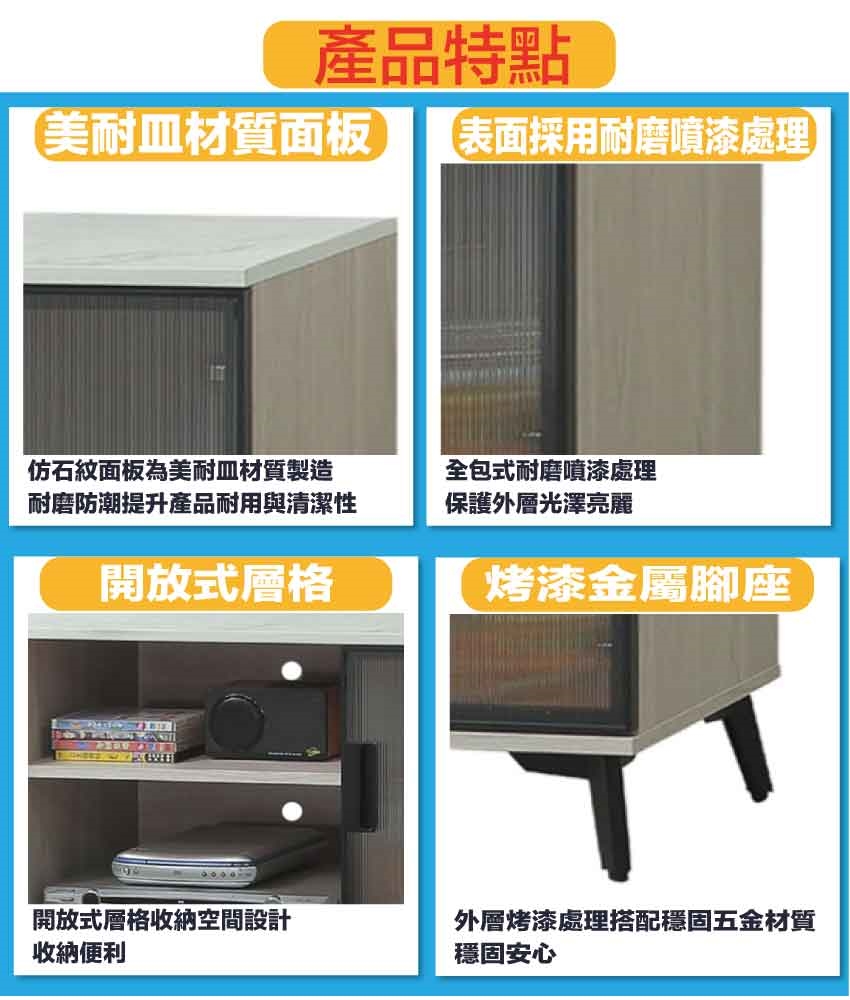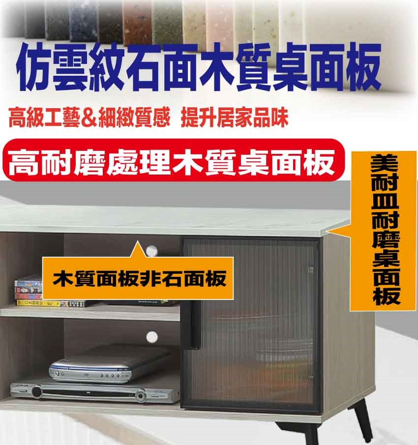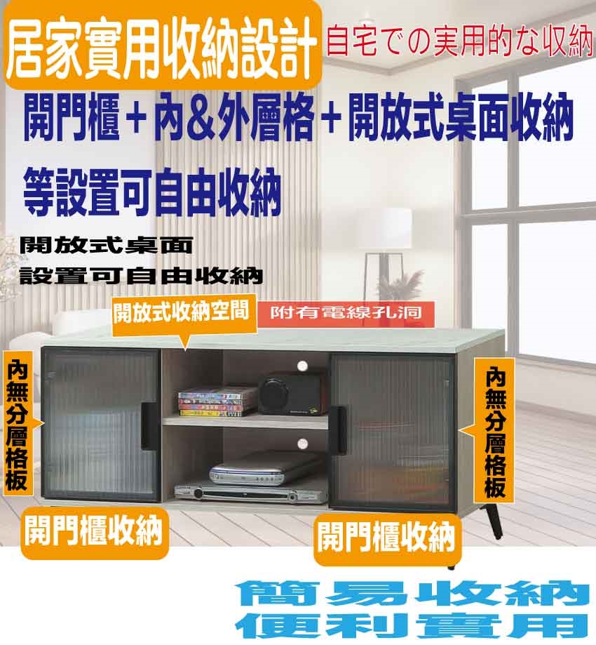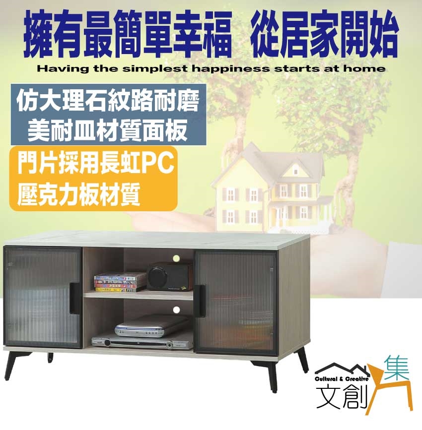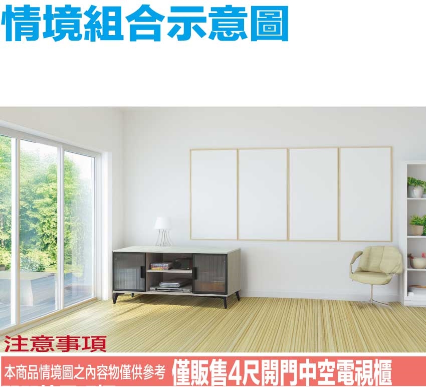 - ◆產品名稱:【綠家居】皮克4尺開門中空電視櫃(仿大理石紋路耐磨美耐皿面板)