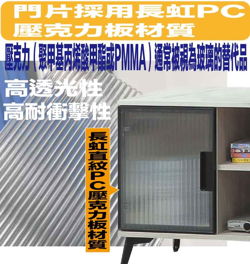 材質:防蛀木心板+烤漆金屬腳座+仿大理石紋路耐磨美耐皿面板+PC壓克力門片