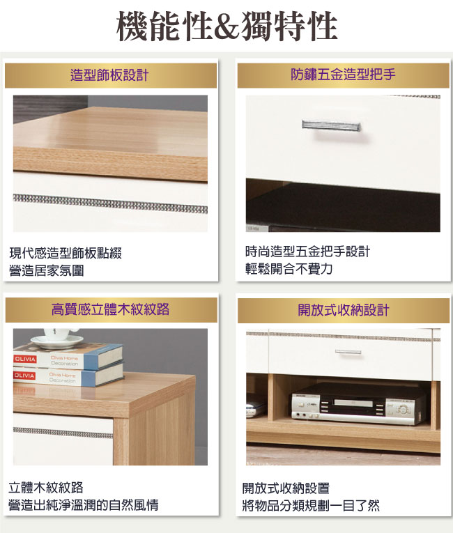 【綠家居】羅柏 時尚4尺木紋雙色長櫃/視聽櫃 充滿雅緻風格的造型線條,高雅外觀提升居家雅緻品味,能輕鬆地融入各種空間風格,更顯一番氣質。長櫃為開放層格+二抽屜等多收納結構,讓您不必再頭痛地整理桌上的瓶瓶罐罐;長櫃材質採用防蛀木心板材質+優利坦抗磨三層全包式塗漆處理+五金造型把手+鋼珠滑軌結構等搭配設計讓您不再煩惱耐用性,尺寸符合現在小宅空間所需,時尚且實用便利的設計,即使身在都市的喧囂鬧區,只要回到了家,就彷彿進入心中的一方小空間 【綠家居】羅柏 時尚4尺木紋雙色長櫃/視聽櫃 可千萬別錯過喔!現在購買專人送到府服務,免組裝+免運費,讓你省時省力省運費!