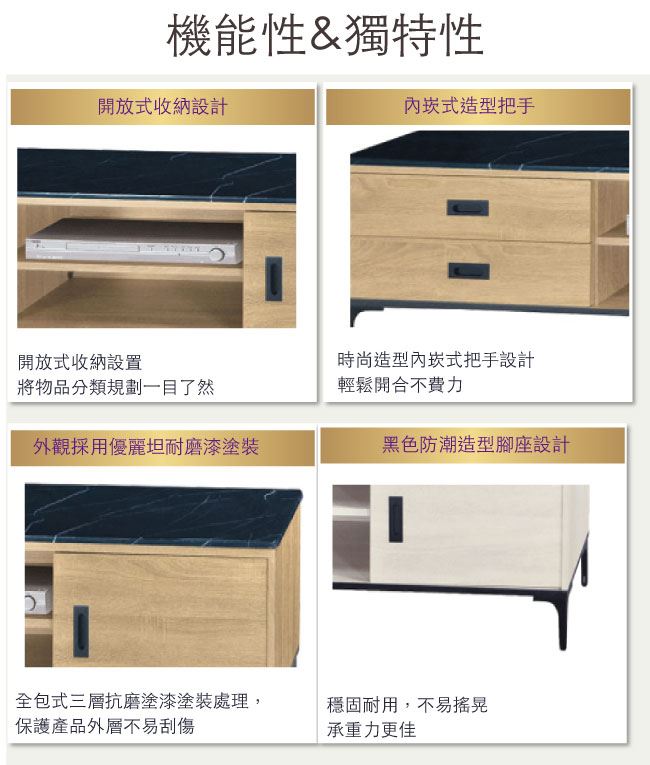 商品介紹 | 【綠家居】亞塞 現代5尺雲紋石面電視櫃/視聽櫃(三色可選) 三色可選+現代簡約風格+安心材質製造,整體採用防夾手緩衝門片五金++黑鐵砂腳座+2cm雲紋石面+防蛀木心板+五金滑軌結構等安心材質製造,外層採用優利坦三層全包式耐磨塗漆塗裝處理搭配開門櫃+二抽屜+開放式層格等收納設計,全由專人配送到家,專業安心服務,替你省下更多時間! 【商品特色】 三色可選+現代簡約風格+安心材質製造,使用放心+搭配居家更便利 採用防夾手緩衝門片五金++黑鐵砂腳座+2cm雲紋石面+防蛀木心板+五金滑軌結構等安心材質製造 採用開門櫃+二抽屜+開放式層格等收納設計 此商品不需要DIY組立,此商品為組立後之成品 品質保證、專業設計、貼心服務 全由專人配送到家,專業安心服務,替您省下更多時間 |