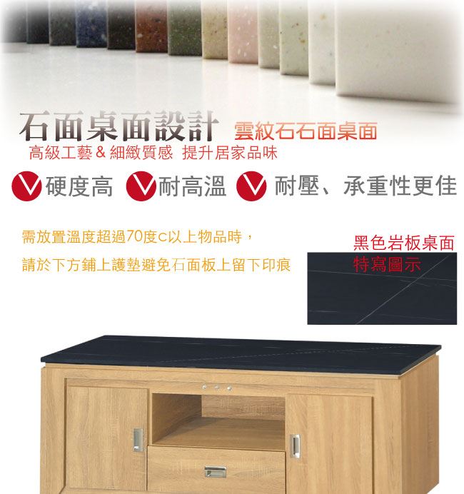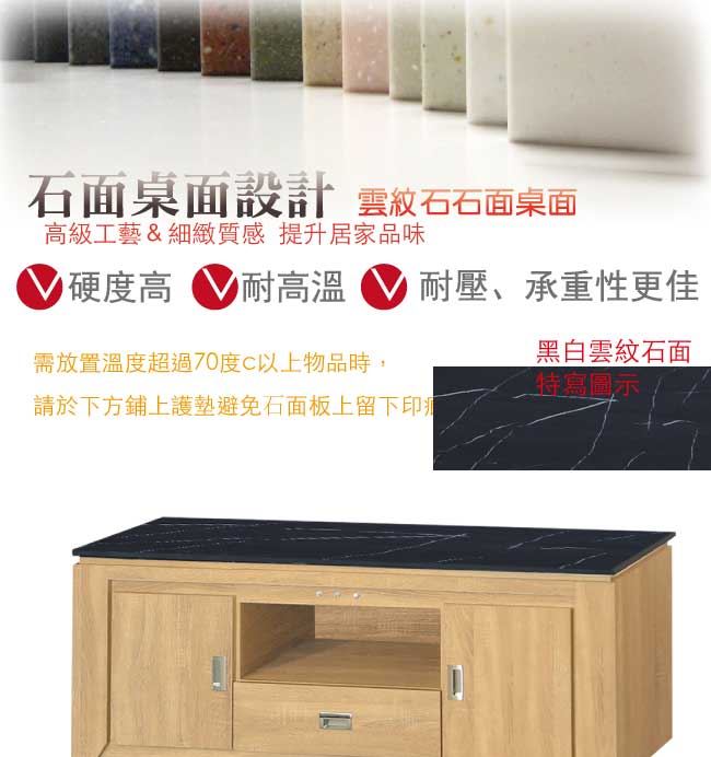 材質 | ◆產品名稱: 【綠家居】溫杜爾 時尚5尺雲紋石面&黑岩板電視櫃/視聽櫃(四色石面可選) 尺寸:(寬)151(深)41x(高)49/公分 ◆材質: 材質:防蛀木心板+防潮耐磨腳座+五金滑軌結構+12mm雲紋石面板 噴漆:防潮耐磨噴漆處理