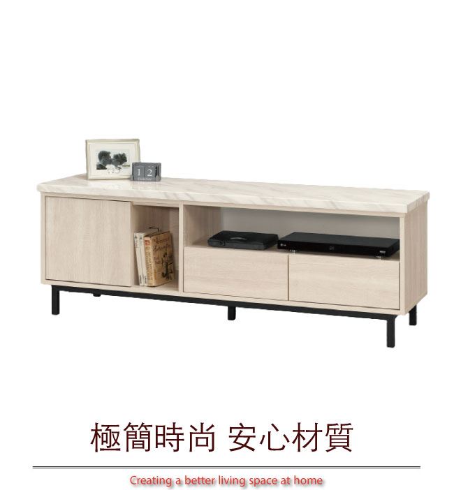 商品介紹 | 【綠家居】馬加柏 淺橡5尺雲紋石面電視櫃/視聽櫃 淺橡木紋色系+現代簡約風格+安心材質製造,整體採用防蛀木心板+五金滑軌結構+黑鐵砂腳座+2cm雲紋石面桌面板+防夾手緩衝門片五金等安心材質製造,外層採用優利坦全包式耐磨噴漆處理搭配開門櫃+二抽屜+內&外開放式收納等收納設計,全由專人配送到家,專業安心服務,替你省下更多時間! 【商品特色】 淺橡木紋色系+現代簡約風格+安心材質製造,使用放心+搭配居家更便利 採用防蛀木心板+五金滑軌結構+黑鐵砂腳座+2cm雲紋石面桌面板+防夾手緩衝門片五金等安心材質製造 開門櫃+二抽屜+內&外開放式收納等收納設計 此商品不需要DIY組立,此商品為組立後之成品 品質保證、專業設計、貼心服務 全由專人配送到家,專業安心服務,替您省下更多時間 |